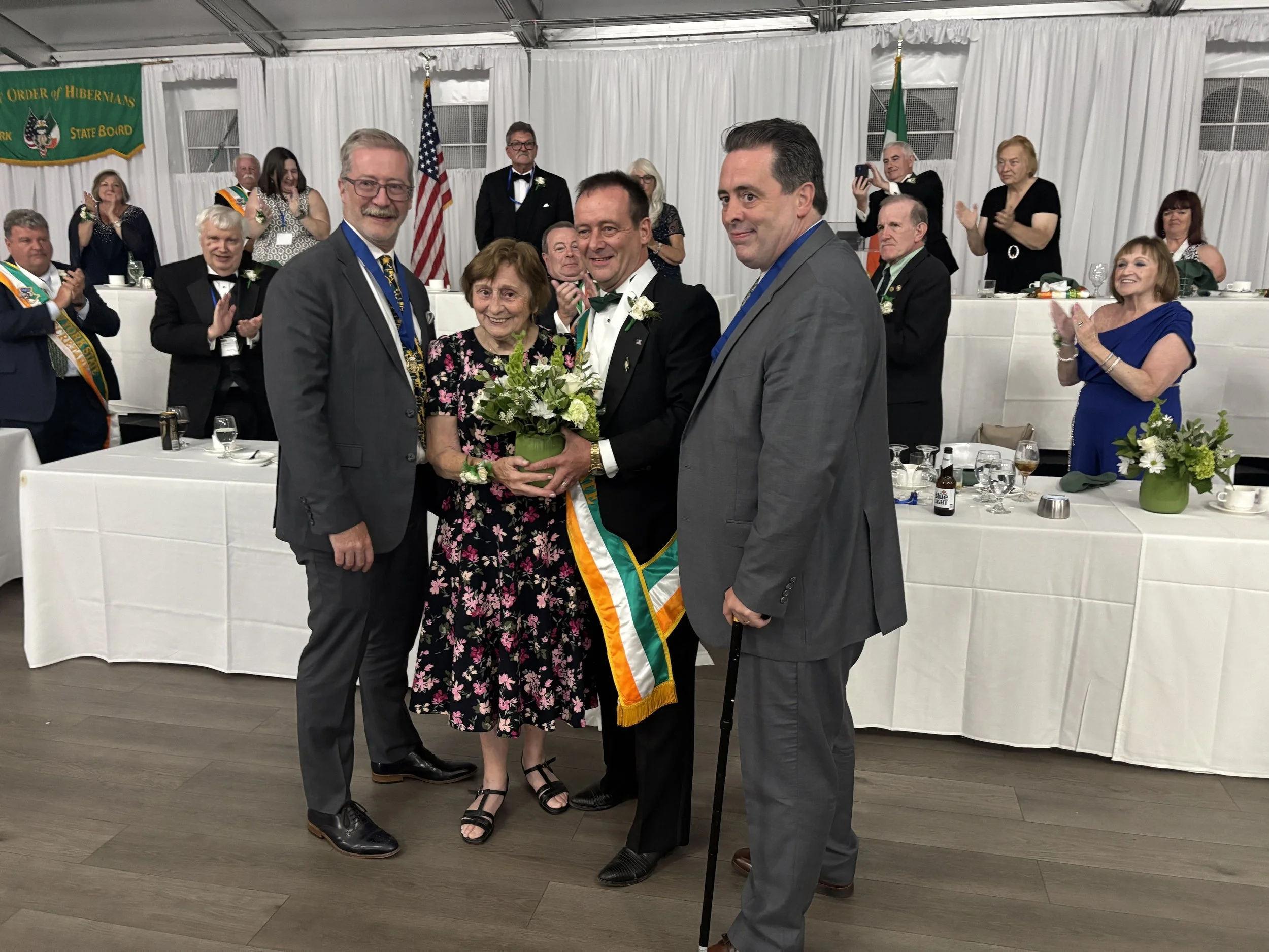 Newly Installed Ancient Order of Hibernian New York State President Tom Beirne celebrates with his mother Mary and his brothers Francis (left) and Martin at the joint AOH/LAOH dinner at the Woodcliff Resort in Rochester. The upstate New York city was the gathering place over the weekend for the AOH/LAOH State Convention.